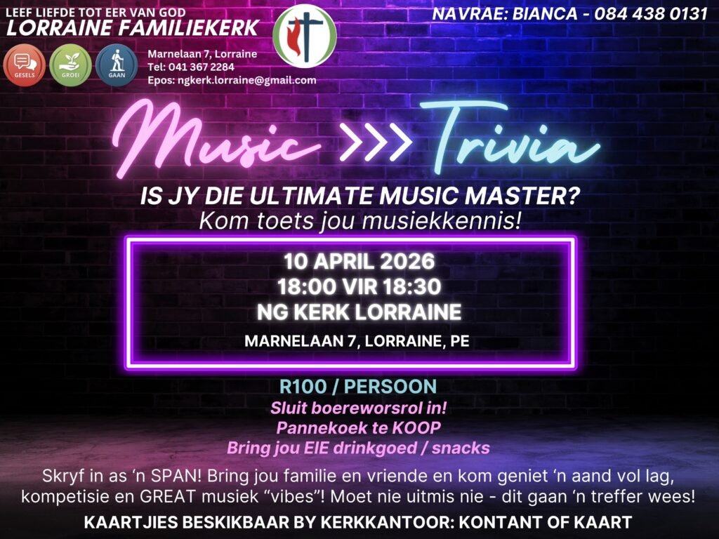 Kennisgewing – Music Trivia Aand – 10 April 2026